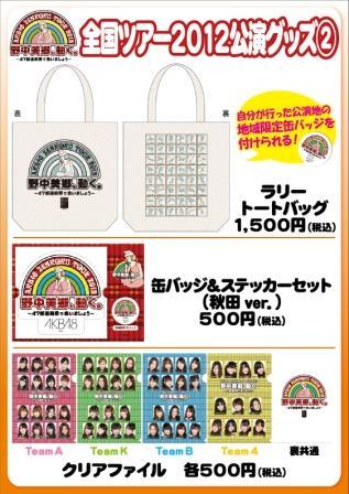 全国共通デザインアイテムの「マフラータオル」、「クリアファイル」、「BIGうちわ」、「ショッピングバッグ」、「ラリートートバッグ」は、AKB48 SHOP、セブンネットショッピング、CAモバイル等、公演会場以外で絶賛発売中。