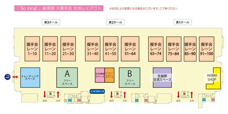 大握手会の会場内の「生誕メッセージ交流スペース」に関しては、メンバー別に「生誕メッセージ交流スペース」をご用意しておりますので、こちらをご利用下さい。大握手会開催日より3カ月以内(5月25日~8月26日まで)の誕生日のメンバーを対象として、スペースをご用意致します。