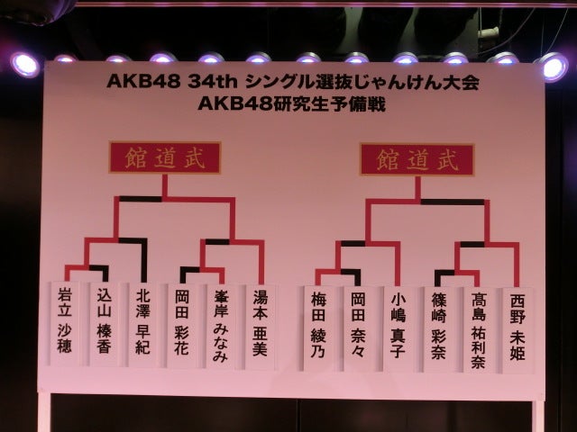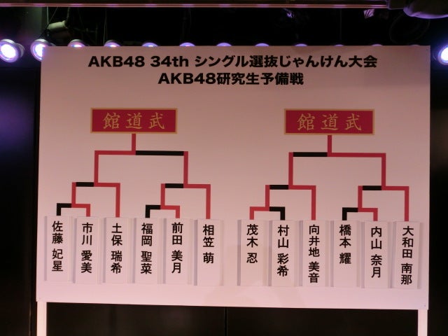 「AKB48 34thシングル選抜じゃんけん大会 AKB48研究生予備戦」の結果をお知らせいたします。