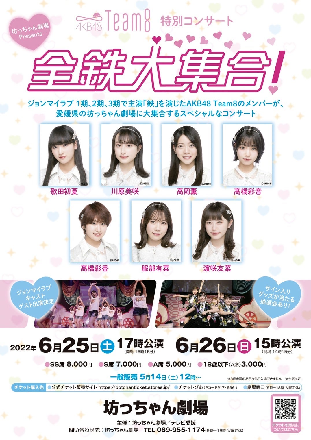 AKB48 Team8特別コンサート「全鉄大集合!」(坊っちゃん劇場) チケット先行発売のご案内