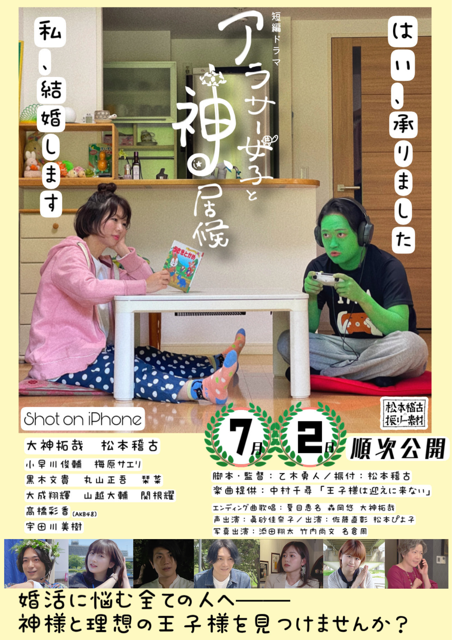 7/2(土) 20:00より、髙橋彩香が出演している松本稽古の振リー素材 短編ドラマ企画『アラサー女子と神、居候』(全4話完結)