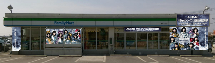 AKB48 49thシングル選抜総選挙 沖縄開催記念として、期間限定で沖縄県内のファミリーマート2店舗を選抜総選挙デザインにラッピングした特別店舗が登場します。