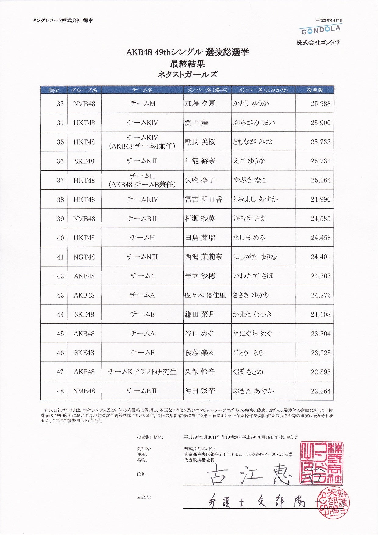 「AKB48 49thシングル 選抜総選挙」開票結果