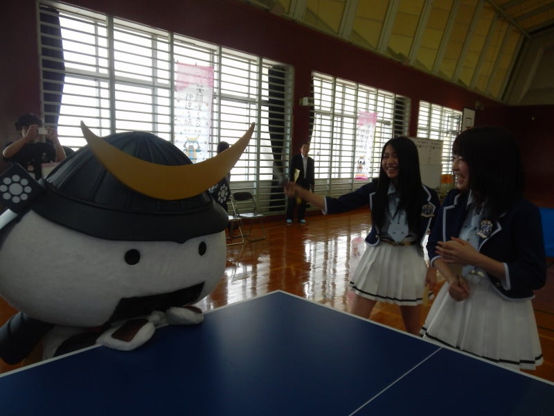 自己紹介を終え、選手の皆さんととしゃもじ卓球の