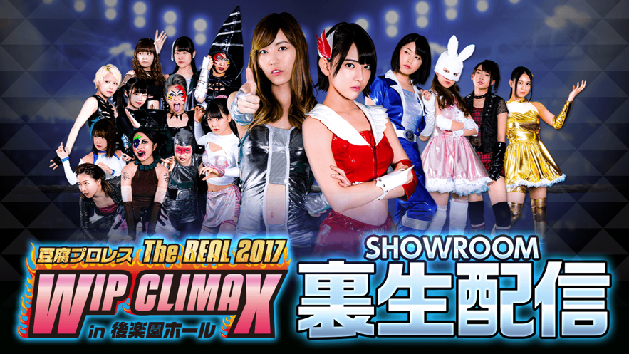 SHOWROOM株式会社(本社東京都渋谷区、代表取締役社長 前田裕二)が運営するアイドルやアーティストとインターネット上でコミュニケーションが楽しめる”夢を叶える”ライブ配信プラットフォーム「SHOWROOMショールーム」において、8月29 日(火)18:00〜(予定)『豆腐プロレス WIP CLIMAX SHOWROOM裏生配信』が決定!