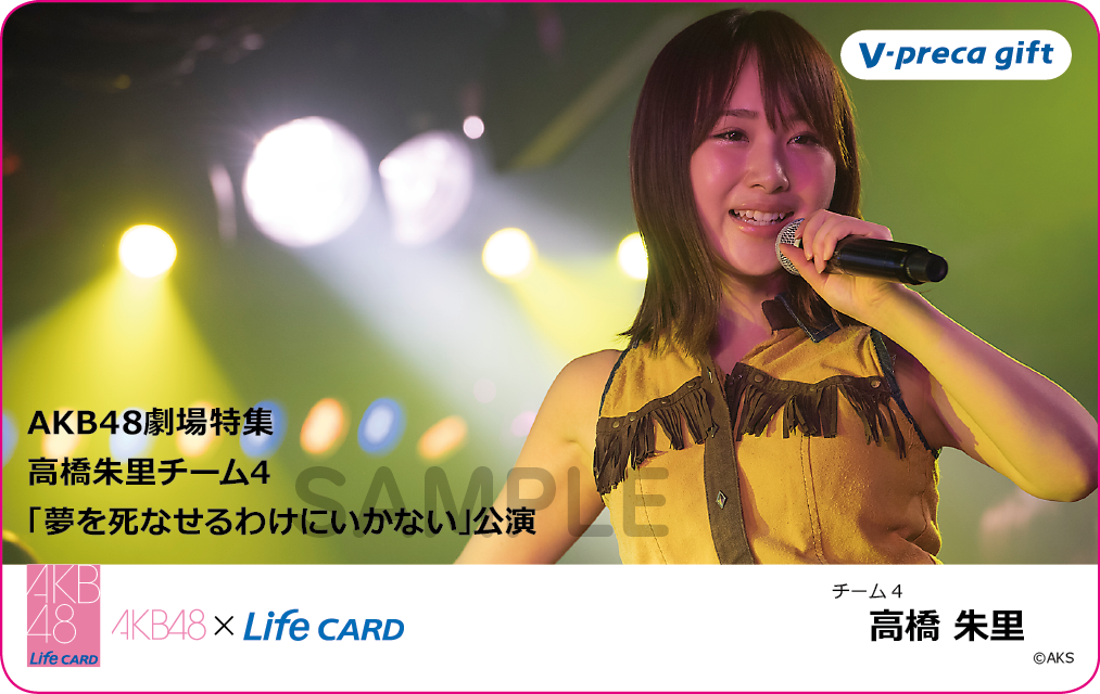 昨日よりスタートしました生誕祭のメンバーを対象とした、AKB48×Life CARDのVプリカ記念販売ですが、明日は高橋朱里デザインのVプリカを販売致します。