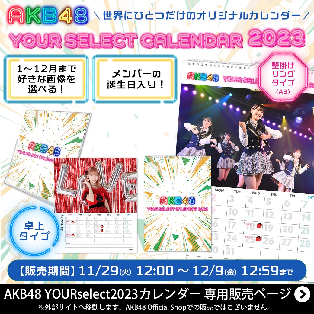 【11/29 12時予約開始】AKB48 YOURselect2023カレンダー発売のお知らせ