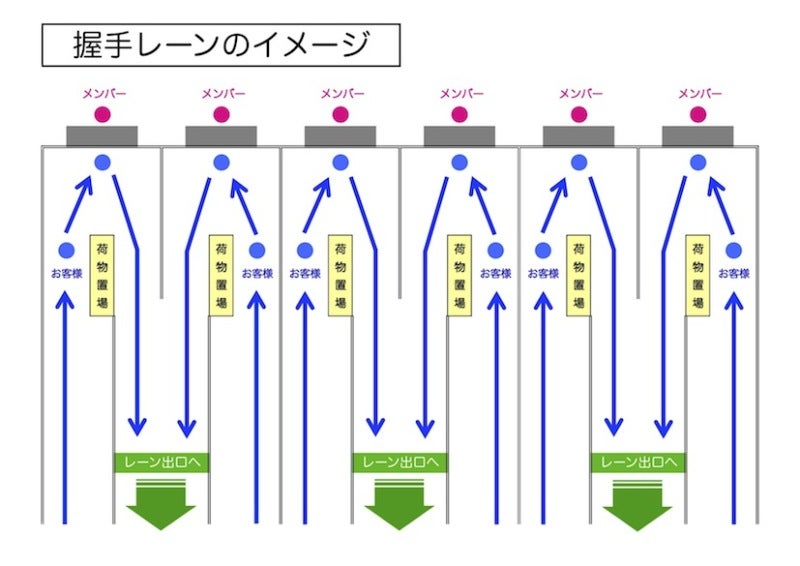 今までの握手会とレーン出口の方向が異なりますのでご注意ください!!