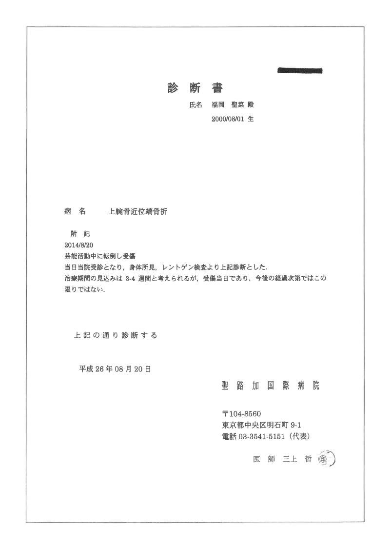 添付の診断書にもございます通り、3~4週間の治療期間が必要とのことです。