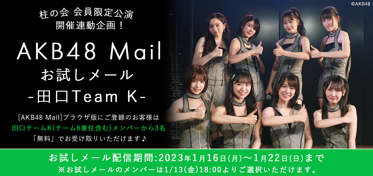 【AKB48 Mail』田口チームKお試しメールサービスご提供のお知らせ