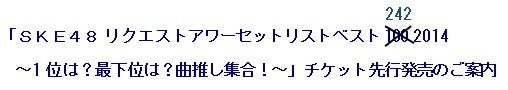 「SKE48 リクエストアワー」チケット先行発売のご案内