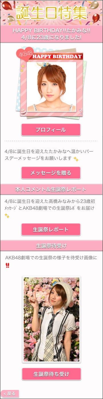 AKB48劇場での生誕祭レポートや、生誕祭の待受け画像をお届けいたします。