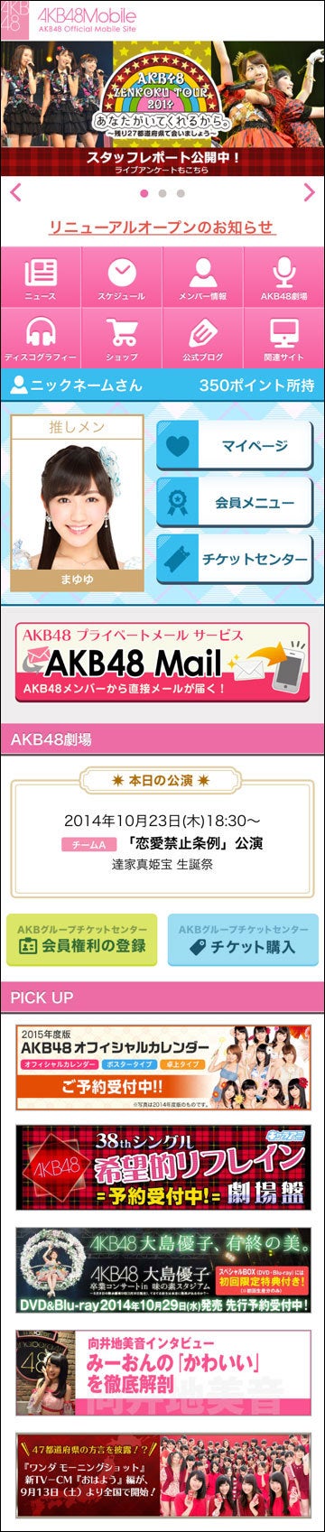 2014年10月23日(木)AM10時より、「AKB48 Mobile」のスマートフォンブラウザ版がリニューアルオープンいたしました!