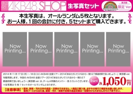 ▽2014年全国ツアー@東京ver.生写真セット 販売価格 1セット1050円(税込)