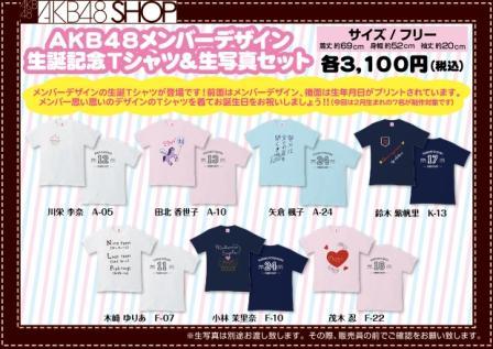 「AKB48メンバーデザイン生誕記念Tシャツ&生写真セット」2月メンバー販売のお知らせ