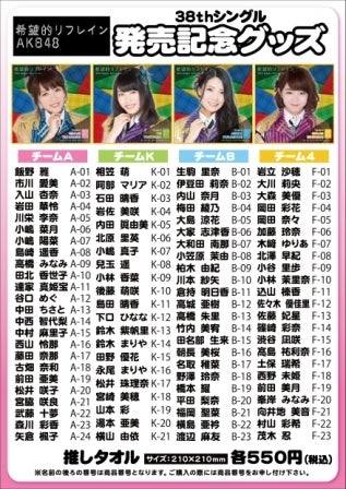 ○AKB48 38thシングル「 希望的リフレイン 」個別生写真 全90種 販売価格各1,050円(税込)
