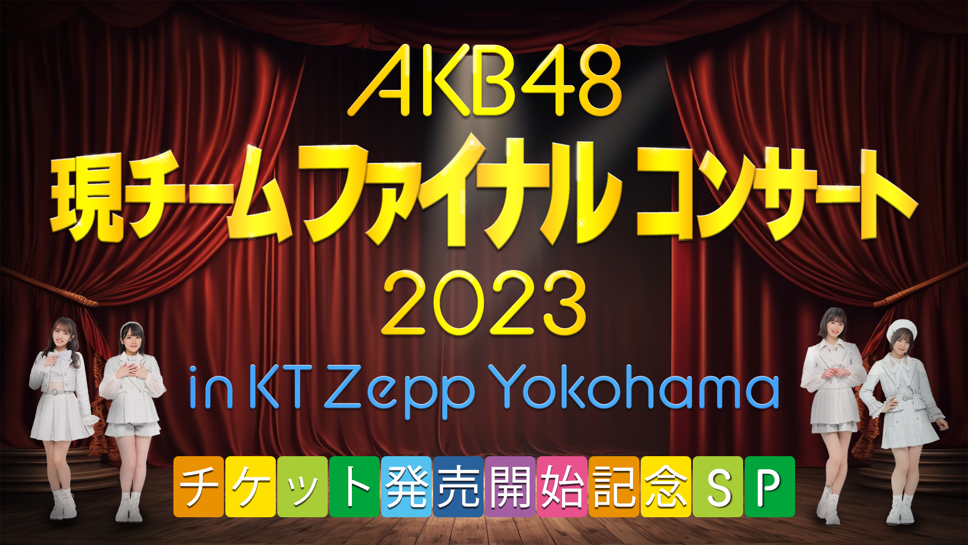 2023年4月29日(土)ぴあアリーナMMにて開催した「AKB48春コンサート2023inぴあアリーナMM」にて発表をいたしました「AKB48現チームファイナルコンサート」に関して、6月5日(月)18:00よりチケットFC会員先行販売を開始いたします。