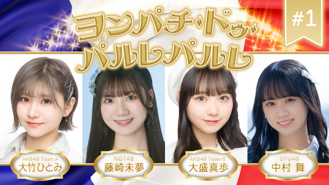 本日より、NGT48より藤崎未夢、STU48より中村舞、AKB48より大盛真歩、大竹ひとみが出演しているヨンパチ・ドゥ・パルレパルレ #1が配信開始!