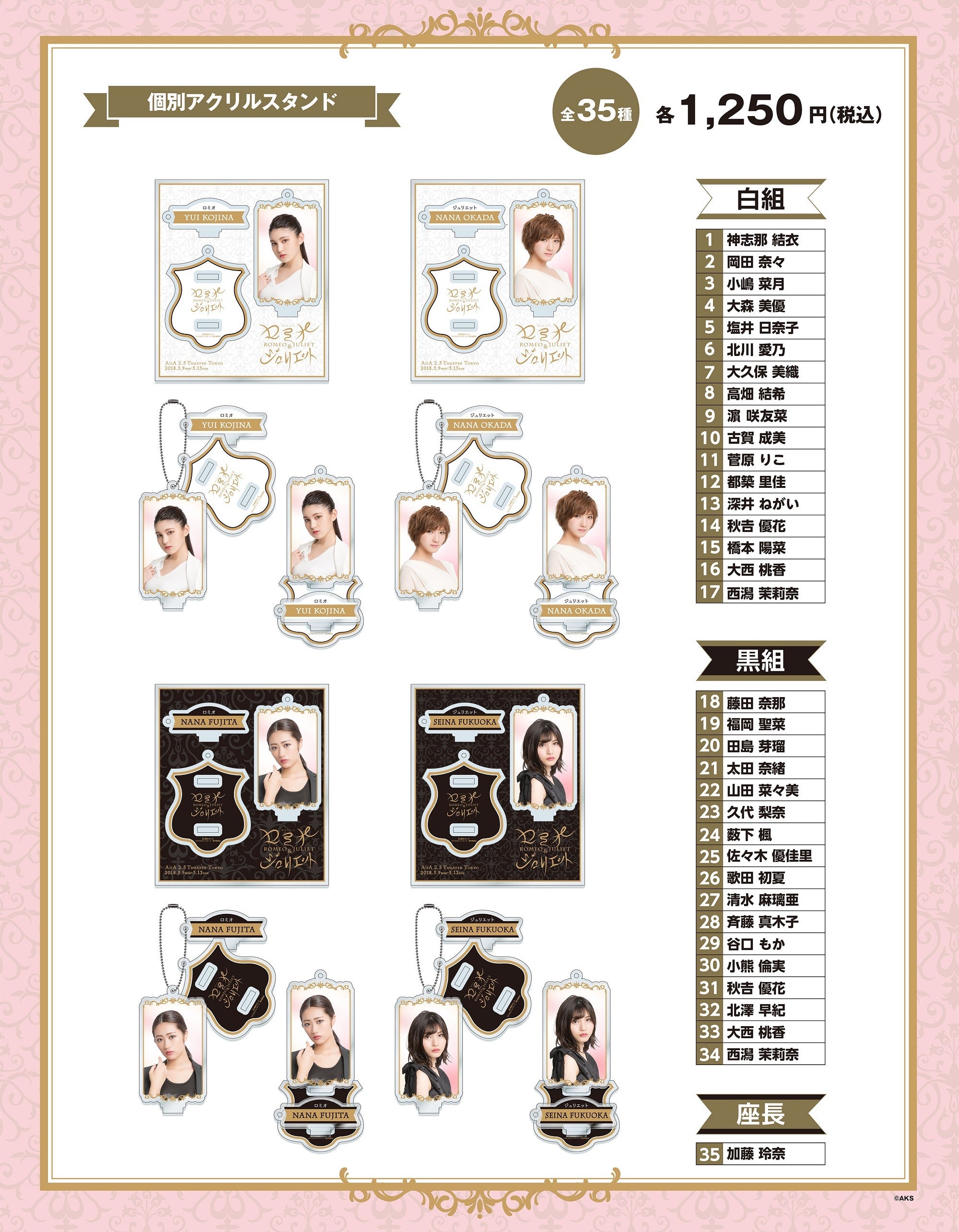 ※ロミオ&ジュリエット4名×各3種、他メンバー31名×各2種、白組・黒組両方出演メンバーはそれぞれ白パターン、黒パターンがございます