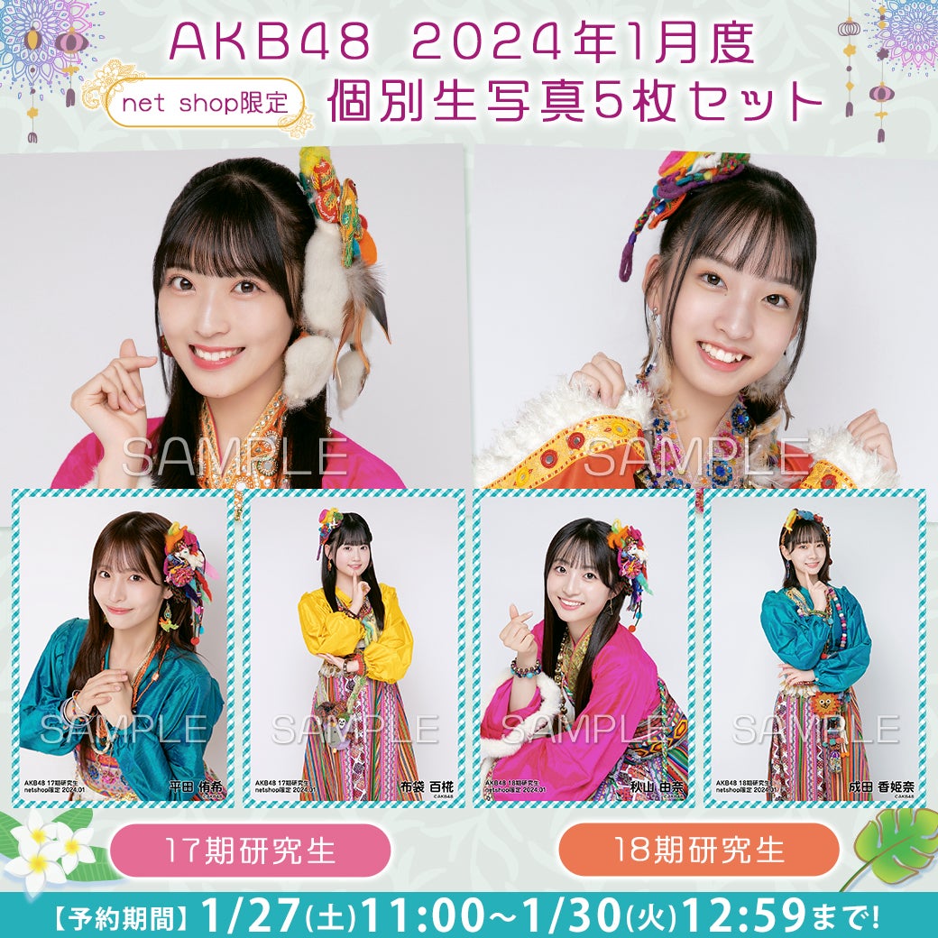 AKB48 18期研究生 2024年1月度 net shop限定個別生写真5枚セット ¥1,200 (税込)