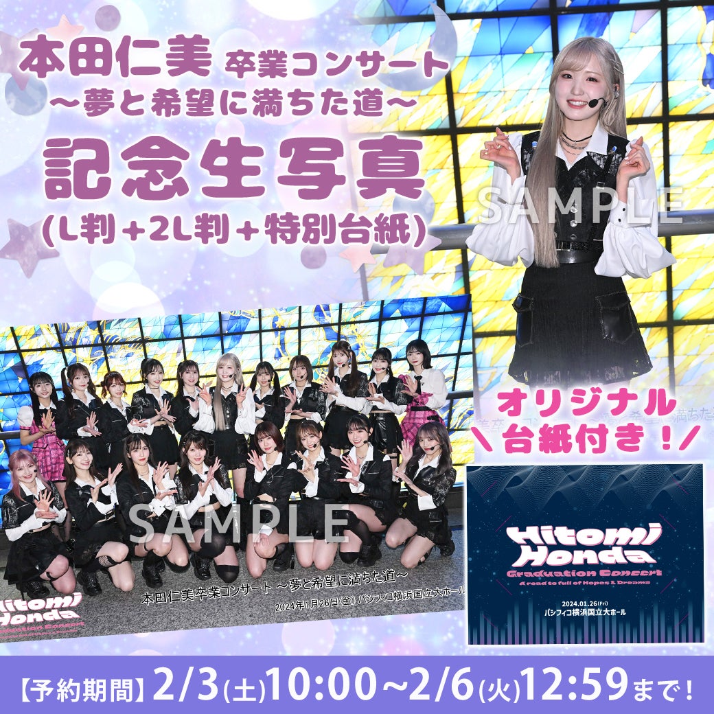 先日開催されました「本田仁美卒業コンサート 〜夢と希望に満ちた道〜」の撮って出し生写真をオフィシャルショップにて販売いたします。