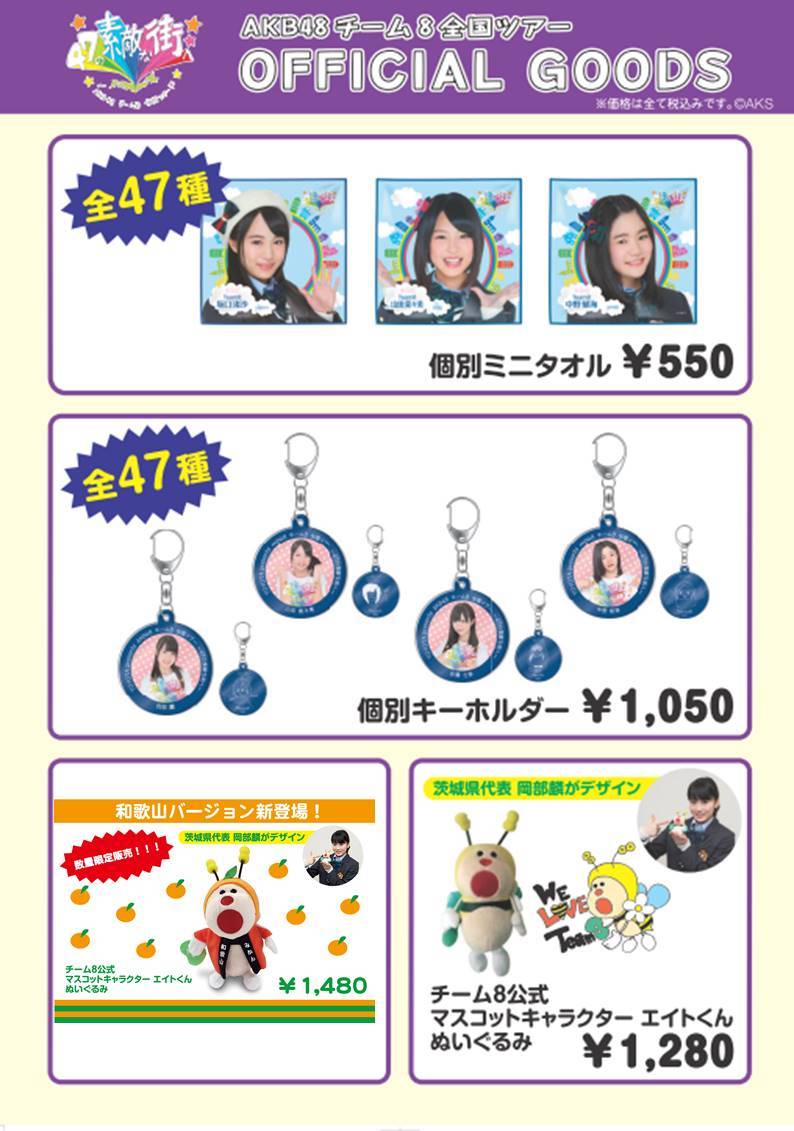 2016年1月30日に和歌山県・和歌山県民文化会館にて開催されます「TOYOTA presents AKB48チーム8 全国ツアー ~47の素敵な街へ~」のグッズ販売につきましておしらせします。
