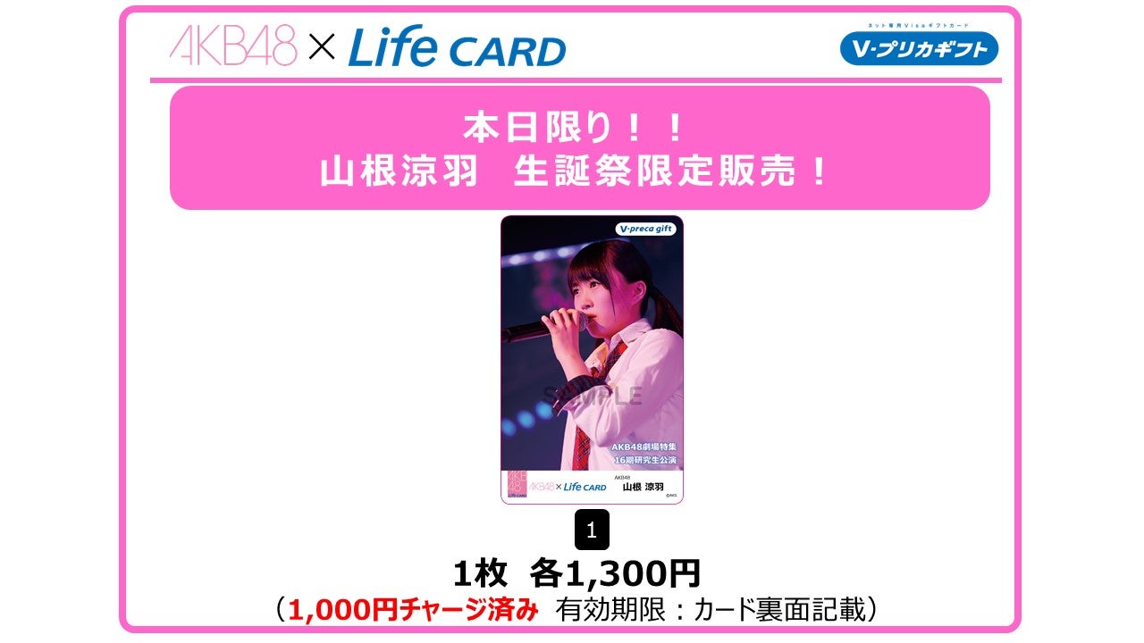 本日(2018年8月30日)山根涼羽の生誕祭開催を記念し、Vプリカを販売致します。
