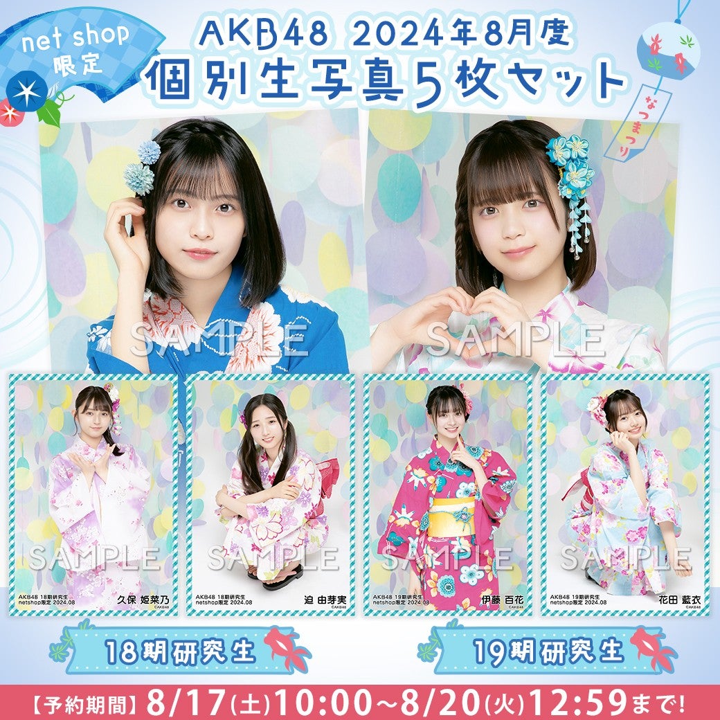 AKB48 18期・19期研究生2024年8月度net shop限定個別生写真発売のお知らせ