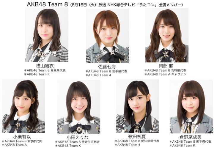 6月18日(火)に放送される、NHK総合テレビの歌番組「うたコン」に柏木由紀、AKB48 Team 8が出演いたします。