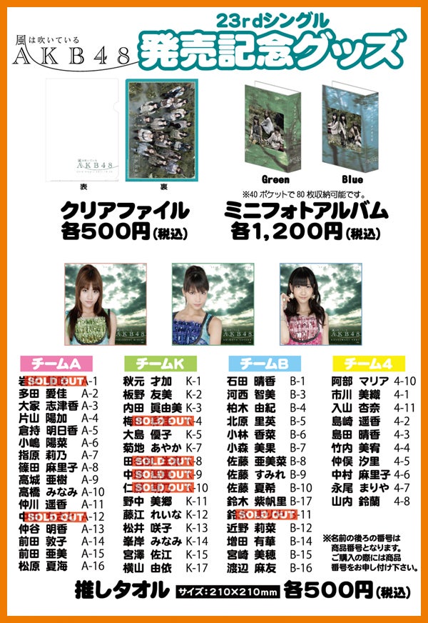 KING RECORDS presents 10月26日発売23rdマキシシングル『風は吹いている【通常盤】』 全国握手会イベント AKB48祭り powered by ネ申テレビ 関西:京セラドーム大阪 グッズ販売のお知らせ