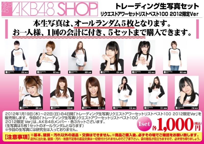 ※生写真はお一人様1回の購入機会につきトータル5セットまでとさせていただきます。