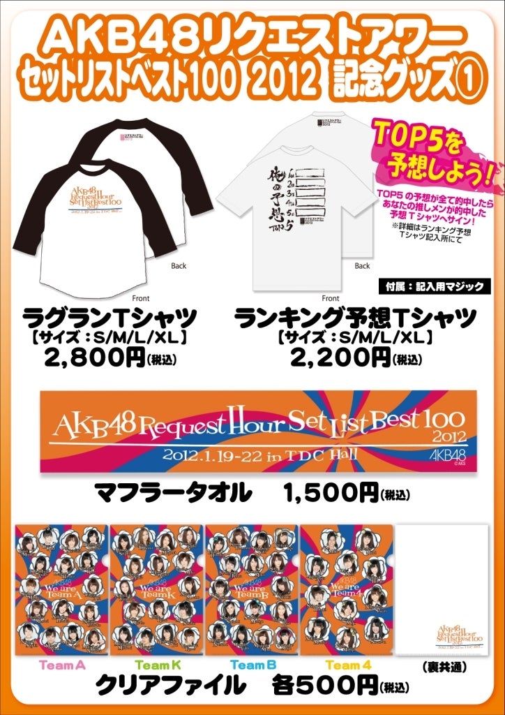 「AKB48リクエストアワー セットリストベスト100 2012」コンサートグッズ販売のお知らせ
