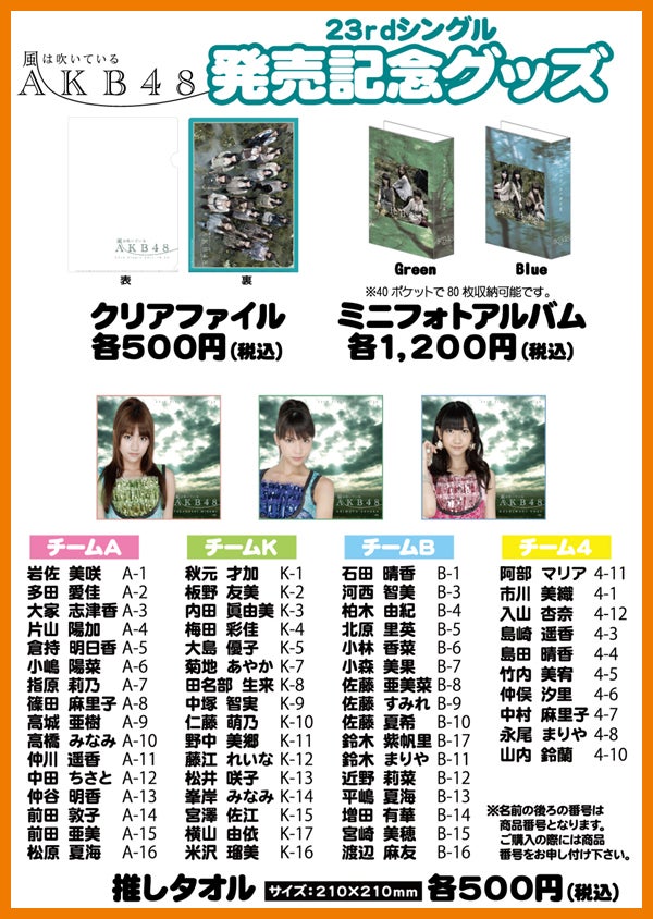 <KING RECORDS presents10月26日発売23rdマキシシングル『風は吹いている【通常盤】』全国握手会イベント AKB48祭り powered by ネ申テレビ 北海道エリア グッズ販売のお知らせ>