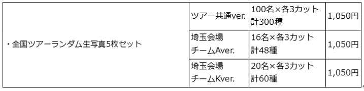 ・全国ツアーランダム生写真5枚セット 各1,050円