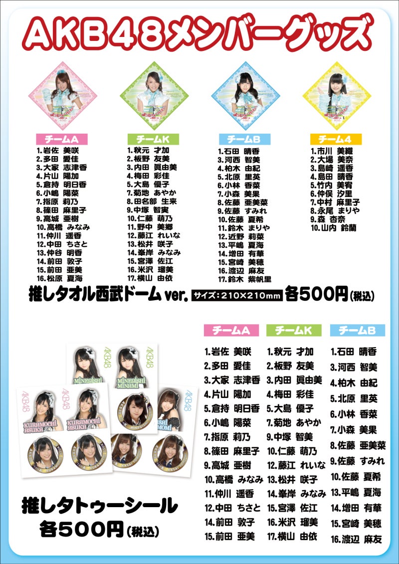 上記が西武ドーム物販ブースでの販売一覧です。