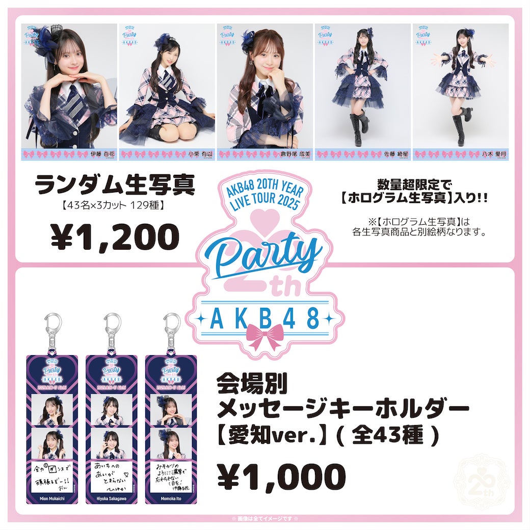 8/16(土)~8/17(日)の2日間刈谷市総合文化センター大ホールにて開催されます「AKB48 20th Year Live Tour 2025 〜PARTYが始まるよ〜」のグッズ・生写真会場販売をお知らせします!