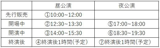 ※当日のコンサートの進行状況及び会場内混雑状況次第で、販売時間及び取扱商品に変更が入る可能性がございます。会場でのご案内及び公式Twitterをご確認ください。