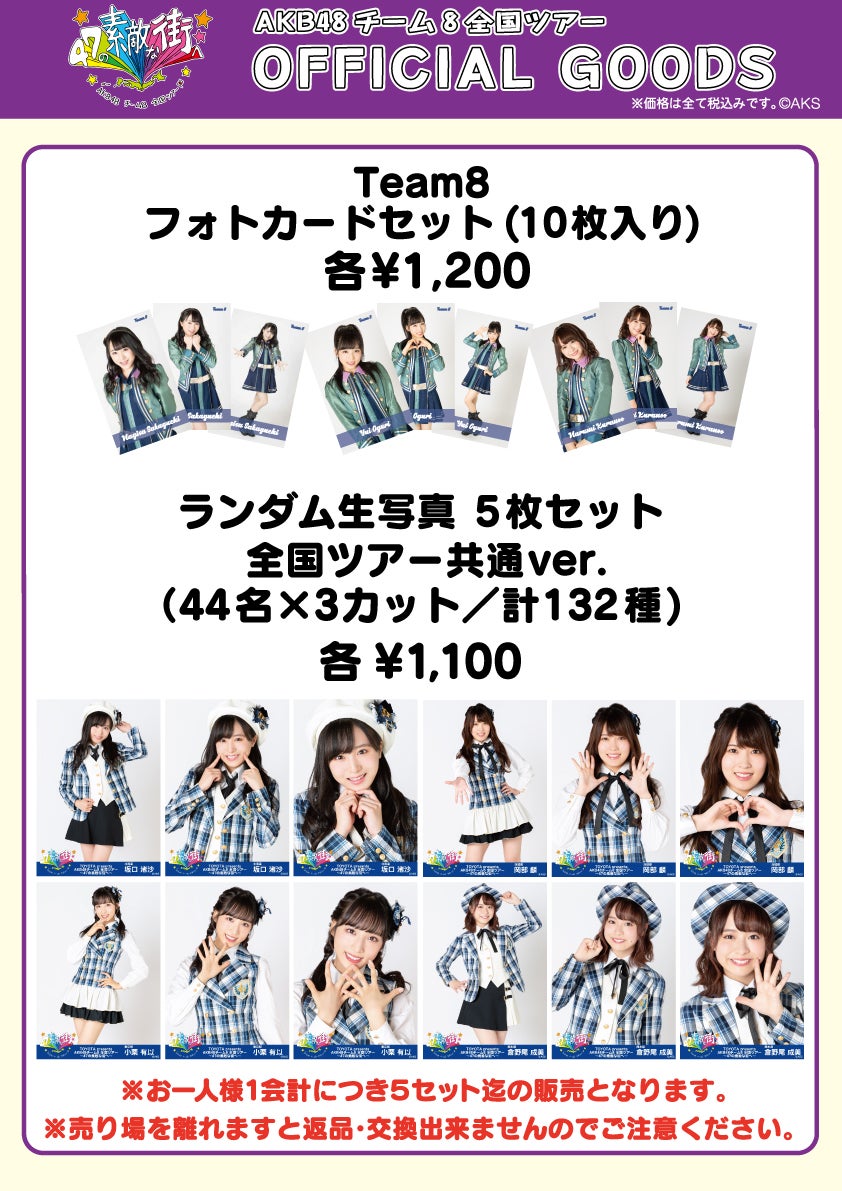 ※ランダム生写真セット2種はそれぞれお1人様1会計につき各5セットまでの購入制限を設けさせていただきます