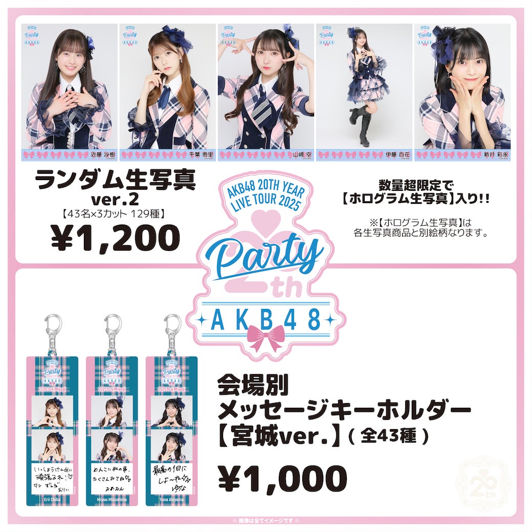 ・【NEW】AKB48 20th Year Live Tour 2025 〜PARTYが始まるよ〜 会場別メッセージキーホルダー【宮城ver.】(全43種) 販売価格 1,000円