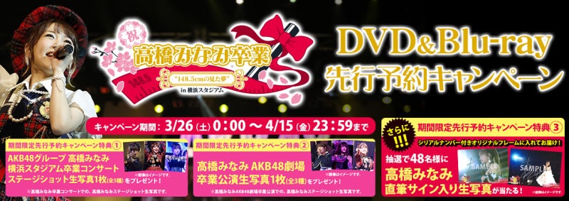 ただ今受付中の「祝 高橋みなみ卒業“148.5cmの見た夢”in 横浜スタジアム」DVD&Blu-ray先行予約キャンペーンに、豪華抽選特典が追加されました!
