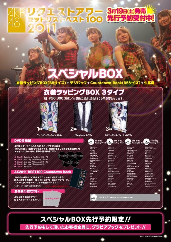 「AKB48 リクエストアワーセットリストベスト100 2011」スペシャルBOX先行予約に続き「DOCUMENTARY of AKB48 to be continued」コンプリートBOXもついに先行予約開始!