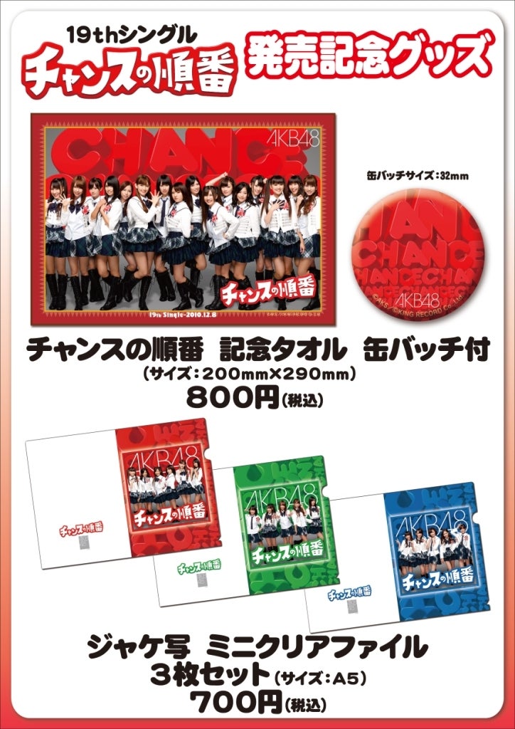 19thシングル「チャンスの順番」の発売記念グッズは前回同様今回3種のグッズを発売いたします!