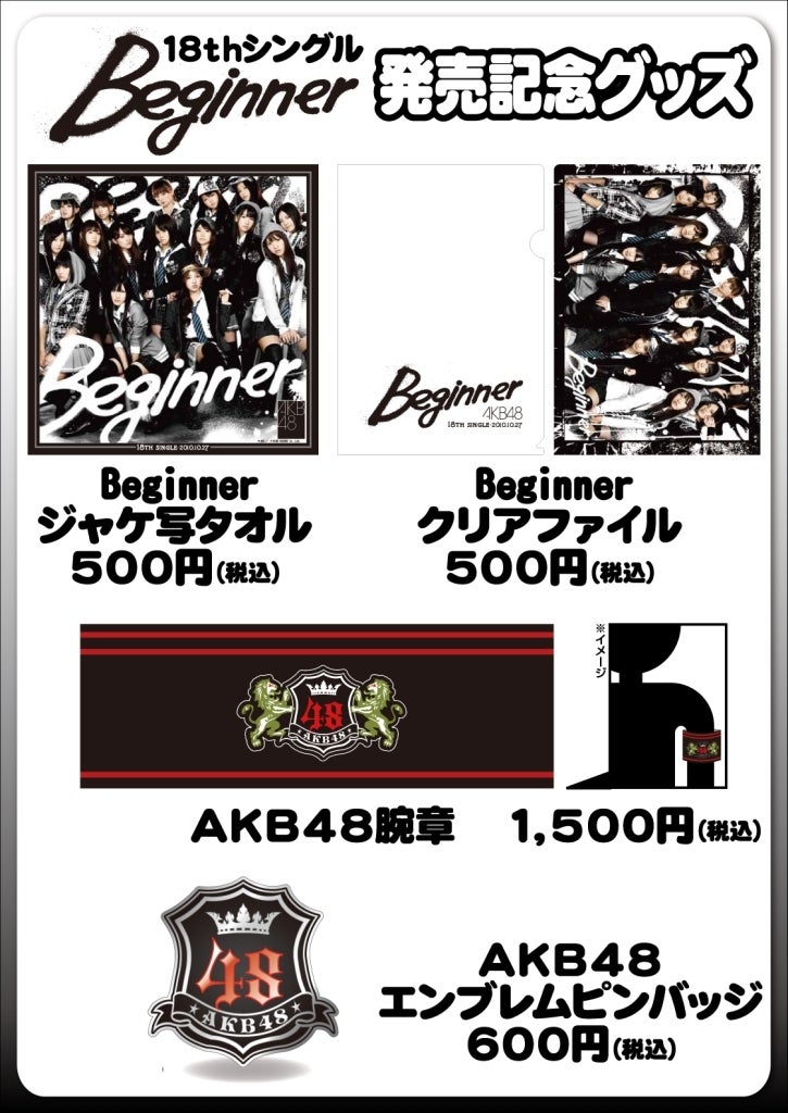 18thシングル「Beginner」の発売記念グッズにつきましては、全商品再度販売致します!そして今回は先行発売ラッシュ!!