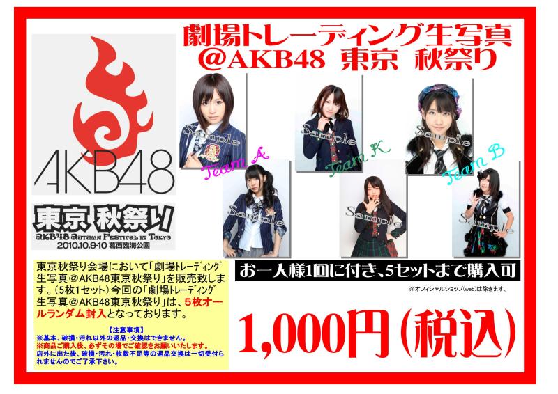 AKB48東京 秋祭り会場において「生写真販売」が決定!