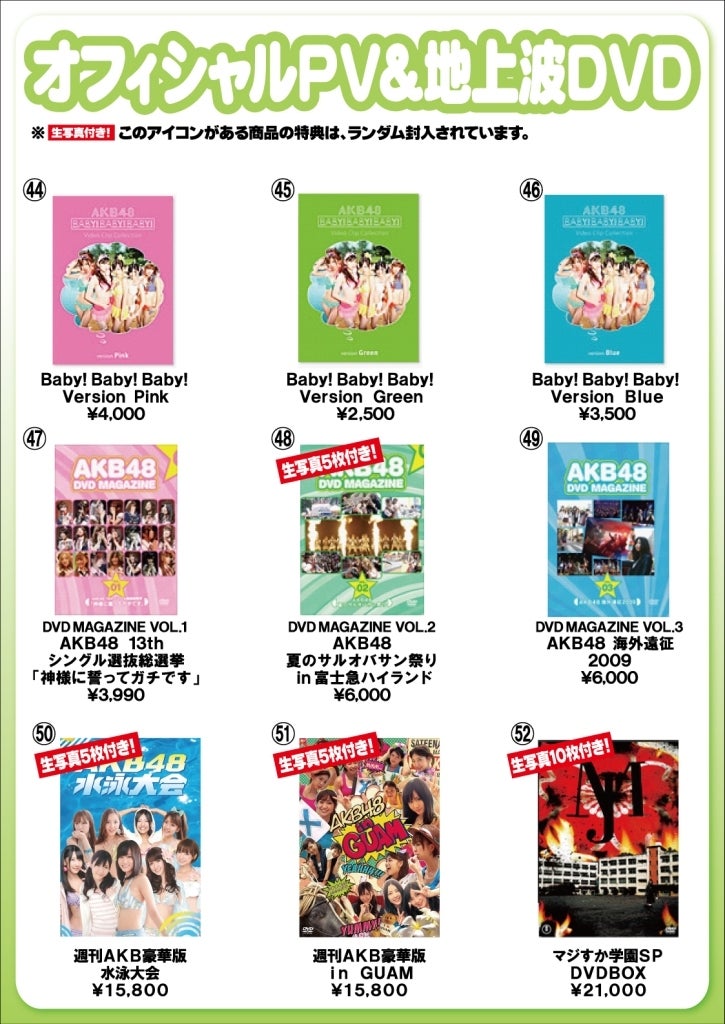 ※ 今回は、ファンの皆様に、せっかく来ていただいたのに完売。というような事のないよう、できる限りの数量をご準備しております。是非、会場内「AKB48 SHOP」へお立ち寄り下さい。
