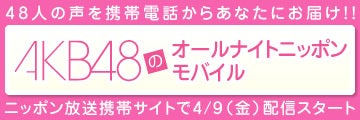 詳しくは、ニッポン放送の”AKB48のオールナイトニッポンモバイル”ホームページ をご覧ください。