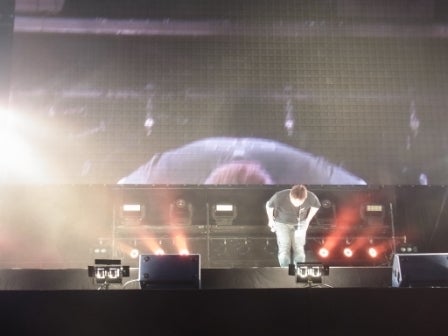 パフォーマンス前につい先日被災地訪問に行ったばかりの