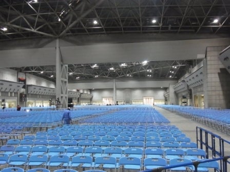 ステージ前から出入り口まで歩いて8分以上・・・。