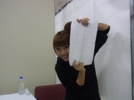 タオルを広げる小嶋陽菜。