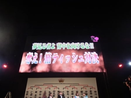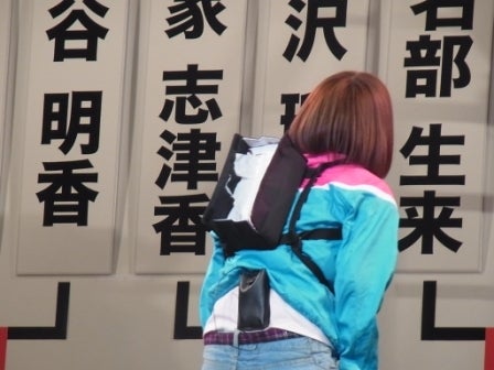 メンバーがそれぞれ背中に背負った箱ティッシュを